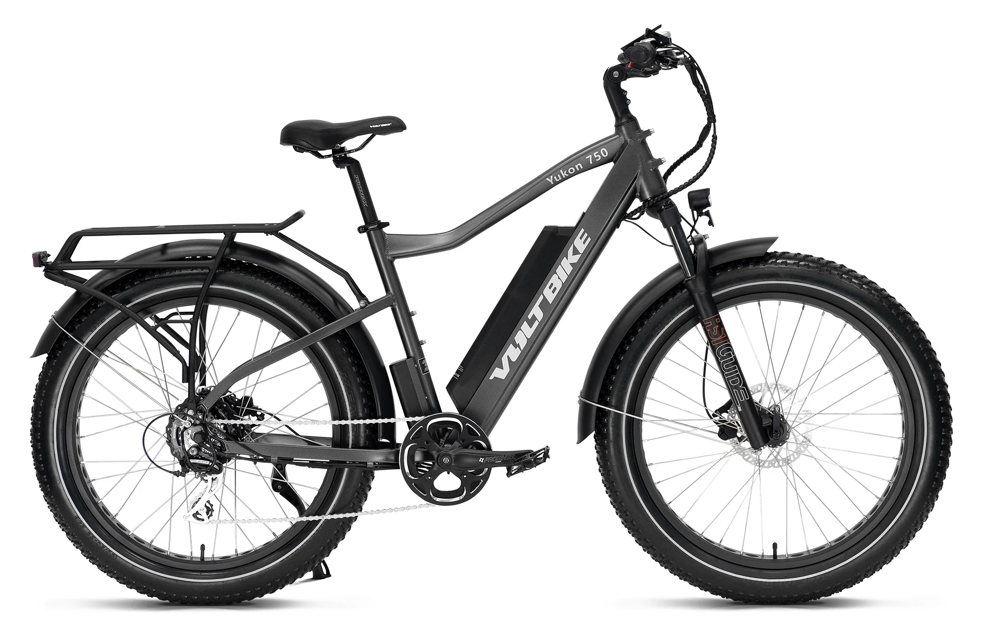 Unleash your adventurous side with the VoltBike Yukon 750 Limited, designed for those who dare to explore beyond the beaten path. This bike boasts a powerful 500W (750W Peak) Bafang motor and a UL-certified Samsung Lithium-ion battery pack, ensuring you have the power and range to conquer any terrain. The Yukon's robust frame holds riders up to 320lbs, and we've built this bike for both comfort and durability. The Yukon 750's front suspension fork smooths out rough trails, while the Tektro hydraulic disc brakes ensure strong and dependable stopping power.